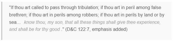 Ultimately, D&C 122 confirms that personal tragedy—whether it stems from a failed bank, the loss of a loved one, or simply the daily grind of life—is not proof of God’s disfavor. It is simply the "experience" required for our eternal progression. We can take comfort knowing that if we endure well, those experiences will ultimately be for our good.