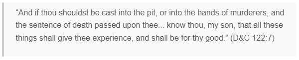 I find immense strength in this. It teaches me that even in the face of persecution, when overcoming evil seems impossible, God is with us, refining us and preparing us for greater purposes. Our obedience, like the Lord's instruction about tithing in D&C 119, becomes a testament of faith during trials.